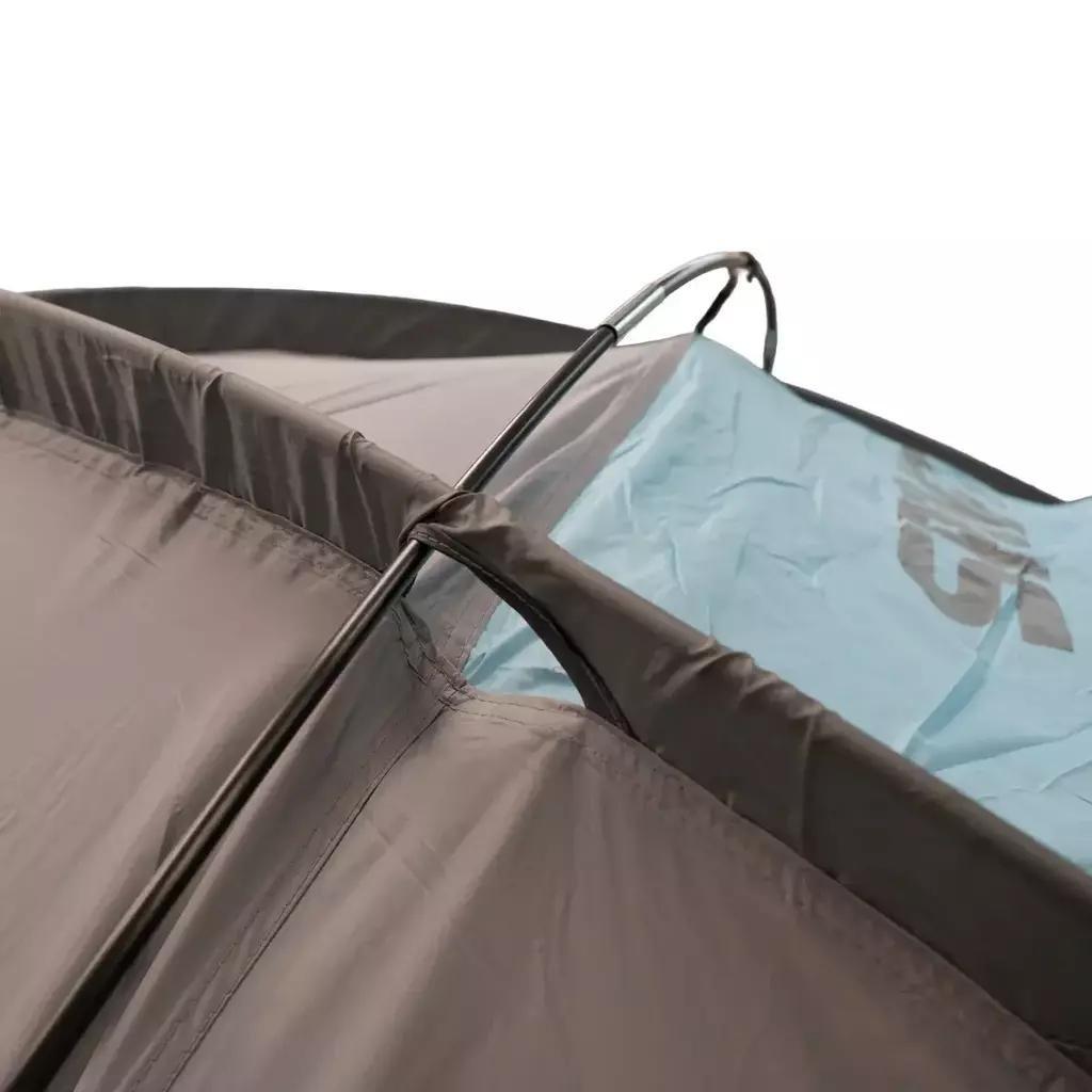 El cubre techo de poliéster 190T UFP50+ con costuras selladas brinda una impermeabilidad de 3000 mm, asegurando protección confiable frente a lluvias intensas. Su interior de poliéster respirable con mosquitero No-See-Um mantiene el ambiente ventilado y libre de insectos, mientras que el piso de polietileno con zócalo alto evita filtraciones y prolonga la durabilidad.