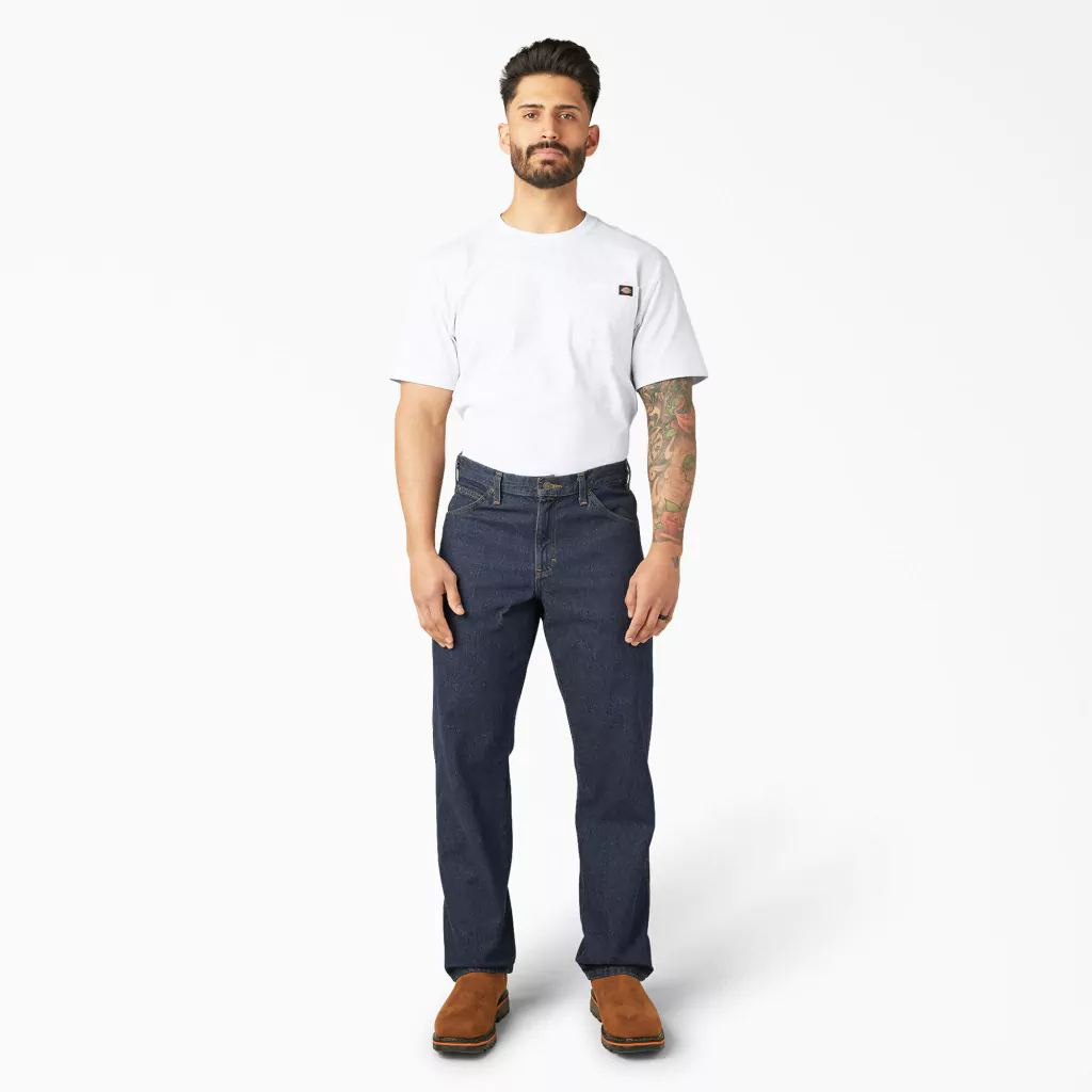 Nuestros vaqueros Dickies Regular Fit para hombre no son unos vaqueros cualquiera. Con décadas de historia y legado, su corte clásico y auténtico es ideal para tu jornada laboral y más allá. Estos vaqueros azules originales, funcionales y duraderos, cuentan con costuras reforzadas y remaches de latón para resistir desgarros. Las siete trabillas del cinturón evitan que se arruguen. El estilo de cinco bolsillos incluye bolsillos delanteros y traseros extra profundos. Incluso incluye un discreto bolsillo para monedas con espacio para una pequeña navaja multiusos. Estos vaqueros también lucen geniales. ¿Qué más se puede pedir?