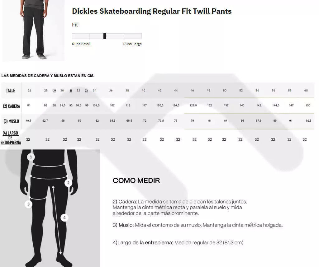 Los pantalones Dickies Skateboarding de sarga están diseñados para el skate. Tomamos nuestro pantalón 874 original y actualizamos el diseño específicamente para el skater. El corte regular y la cintura alta te ofrecen más espacio para maximizar tu movilidad. El interior presenta los característicos detalles rojos de Dickies Skateboarding y bolsillos negros suaves con diseño de espiga para mayor comodidad. En la parte delantera, el resistente cierre de botón metálico no se desgasta con el tiempo, lo que prolonga la vida útil de estos pantalones.