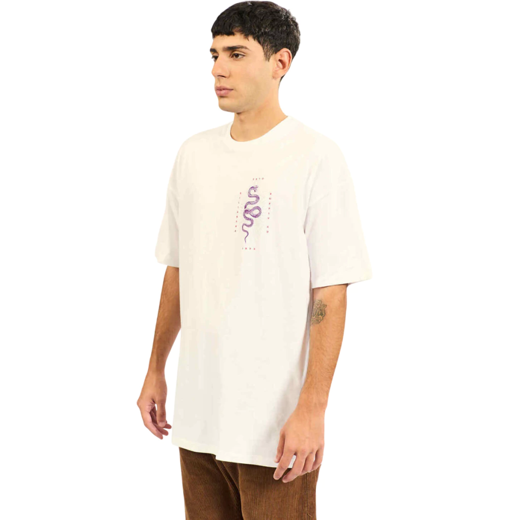 Listo para explorar con comodidad. Esta remera Serpiente Over de algodón te acompaña en cada aventura con un calce oversize y suave al tacto. Su diseño de manga corta, escote redondo y estampa en frente y espalda capturan la esencia libre y activa de los que buscan siempre un poco más.